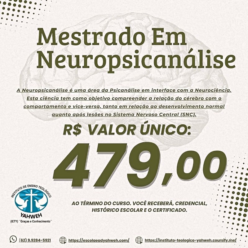 O Mestrado em Neuropsicanálise do Instituto Yahweh é um curso 100% online, desenvolvido para quem busca compreender profundamente a mente humana, unindo os conhecimentos da Psicanálise, Neurociências e Psicologia.